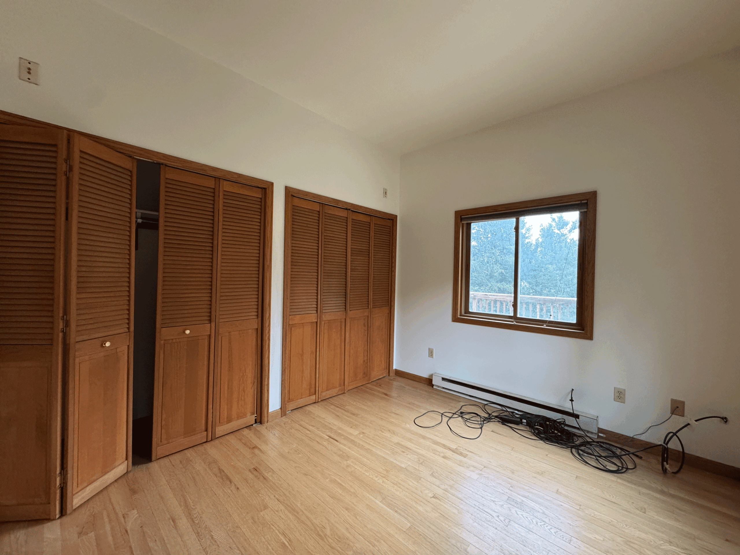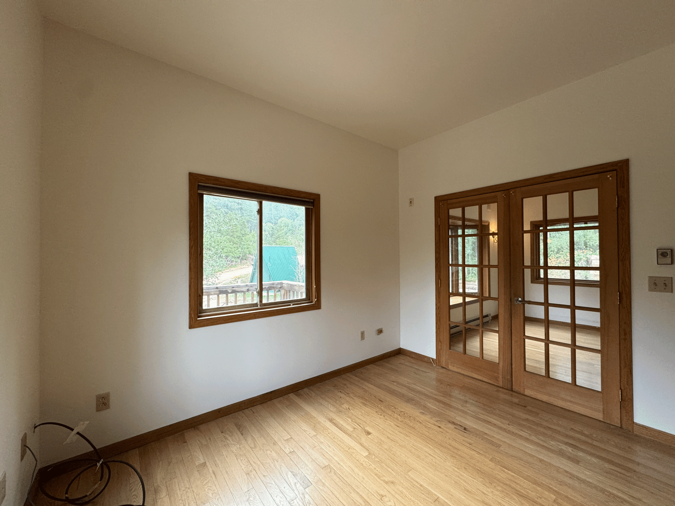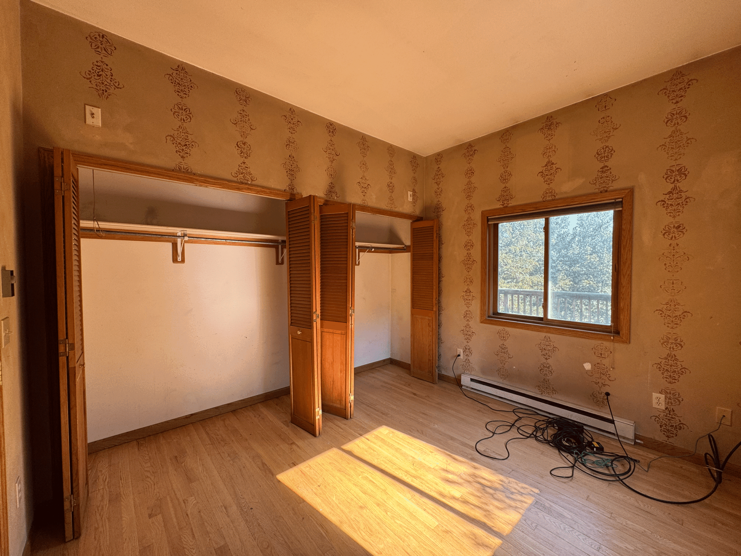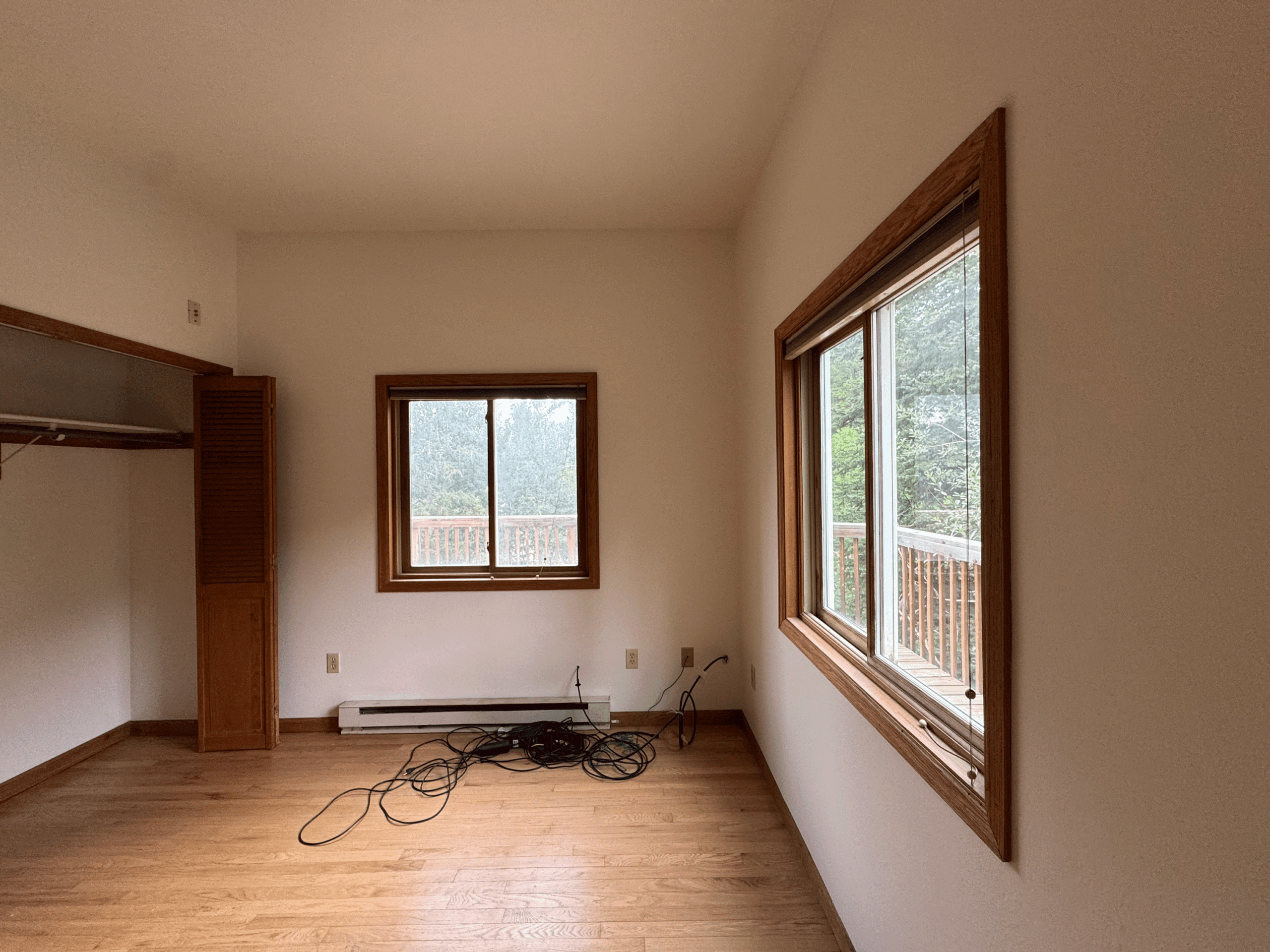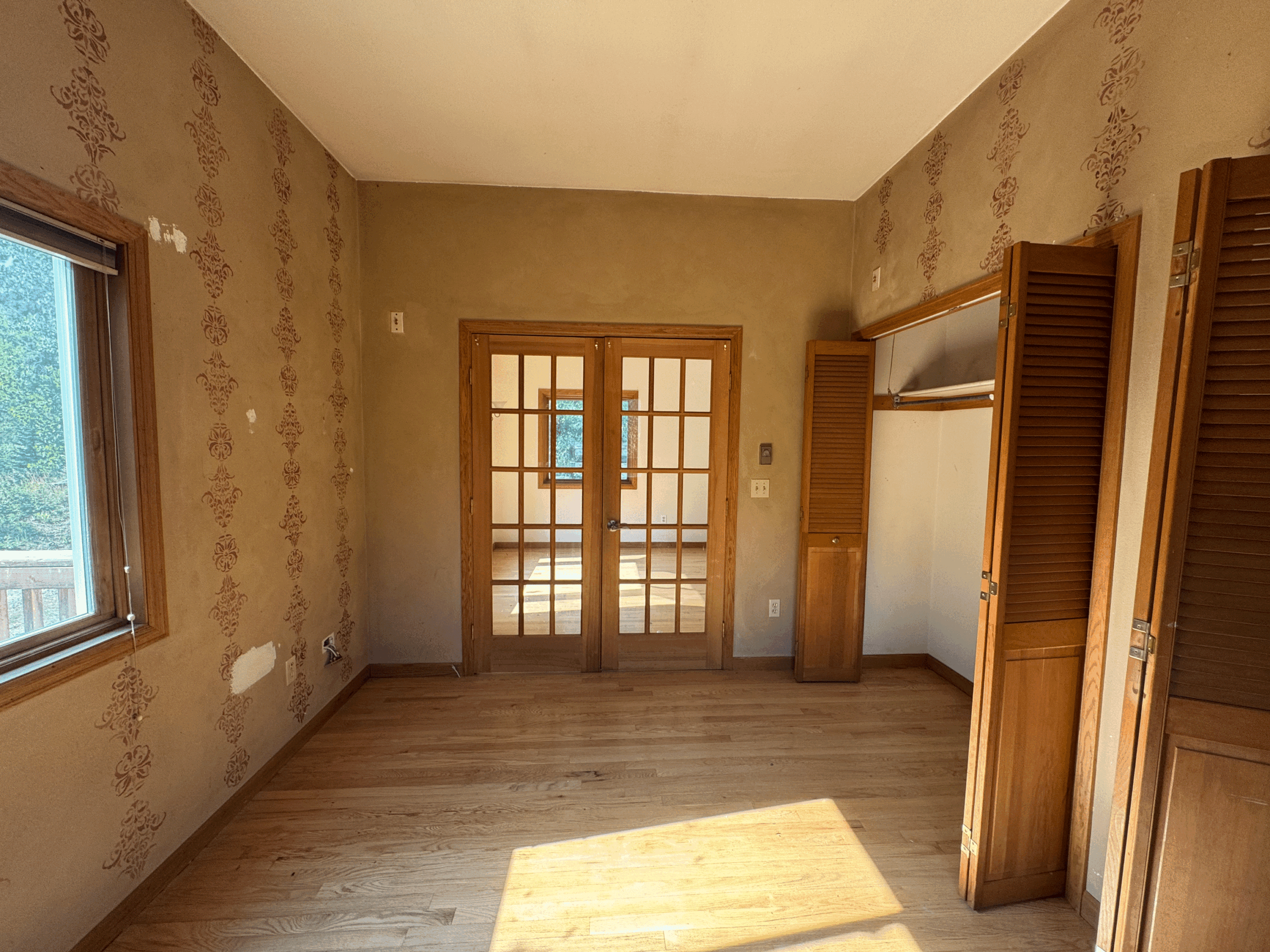 This was one room out of a full interior I did August 2025. It had a previously stenciled dark pattern that needed to be sanded and primed before painting. All pin holes and larger were filled, walls & ceiling primed (walls twice) and got two coats of Sherwin Williams Cashmere. These photos were taken at the end of the day after sweeping and cleaning up. Floor protection used during all steps.